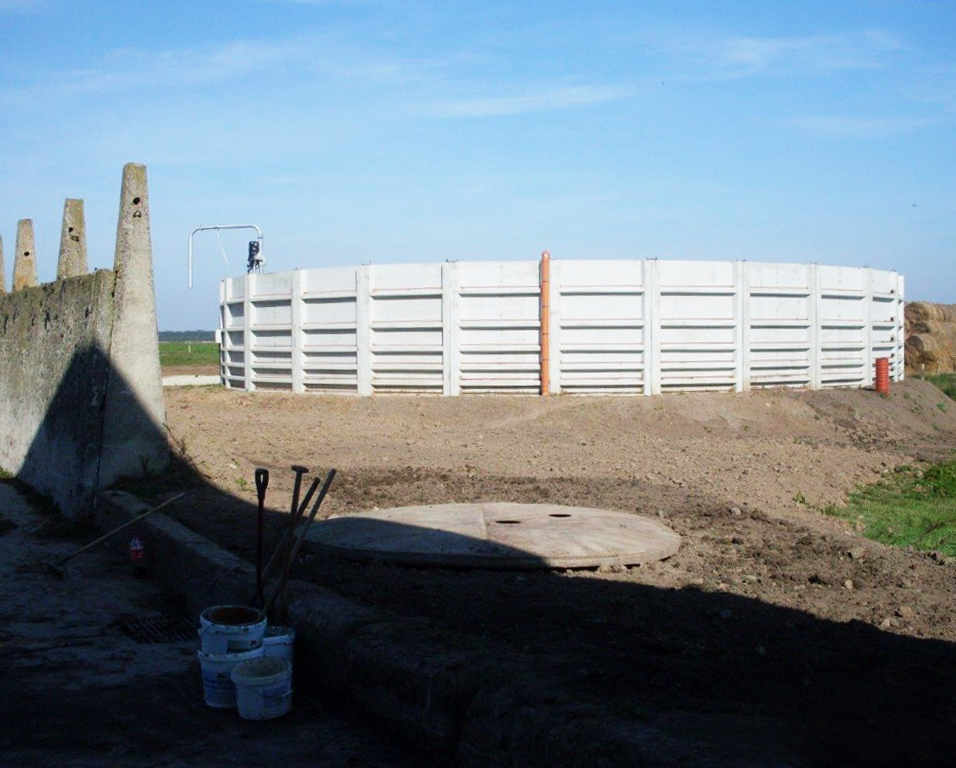 Reinforced concrete sewage collection tanks are installed in those places, where the level of the ground water is high, and the ground reservoirs of liquid manure (sewage) cannot be installed, or there is not enough space for the installation of reservoirs. Maximum volume up to 4250 m3.